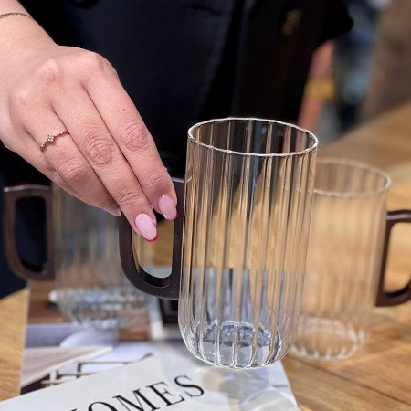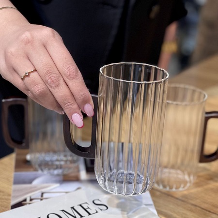 ماگ بلند پیرکس دسته دار طرح شیاردار وارداتی اورجینال