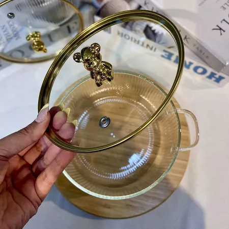 قابلمه پیرکس حرارت مستقیم مدل خطی با درب خرسی kit-1012 قابلمه پیرکس خرسی مشهور محصولی وارداتی ساخته شده از بروسیلیکات حرارتی 100 درصد آنتی شوک تا دمای بالای 400 درجه سانتیگراد قابل استفاده در ماکروفر و انواع اجاقها و ماشین ظرفشویی حجم 1800cc/ ارتفاع 11 سانتی متر/ قطر دهانه 16سانتی مقاوم در برابر سردی وگرمی/ شستشوی آسان دستی و ماشینی