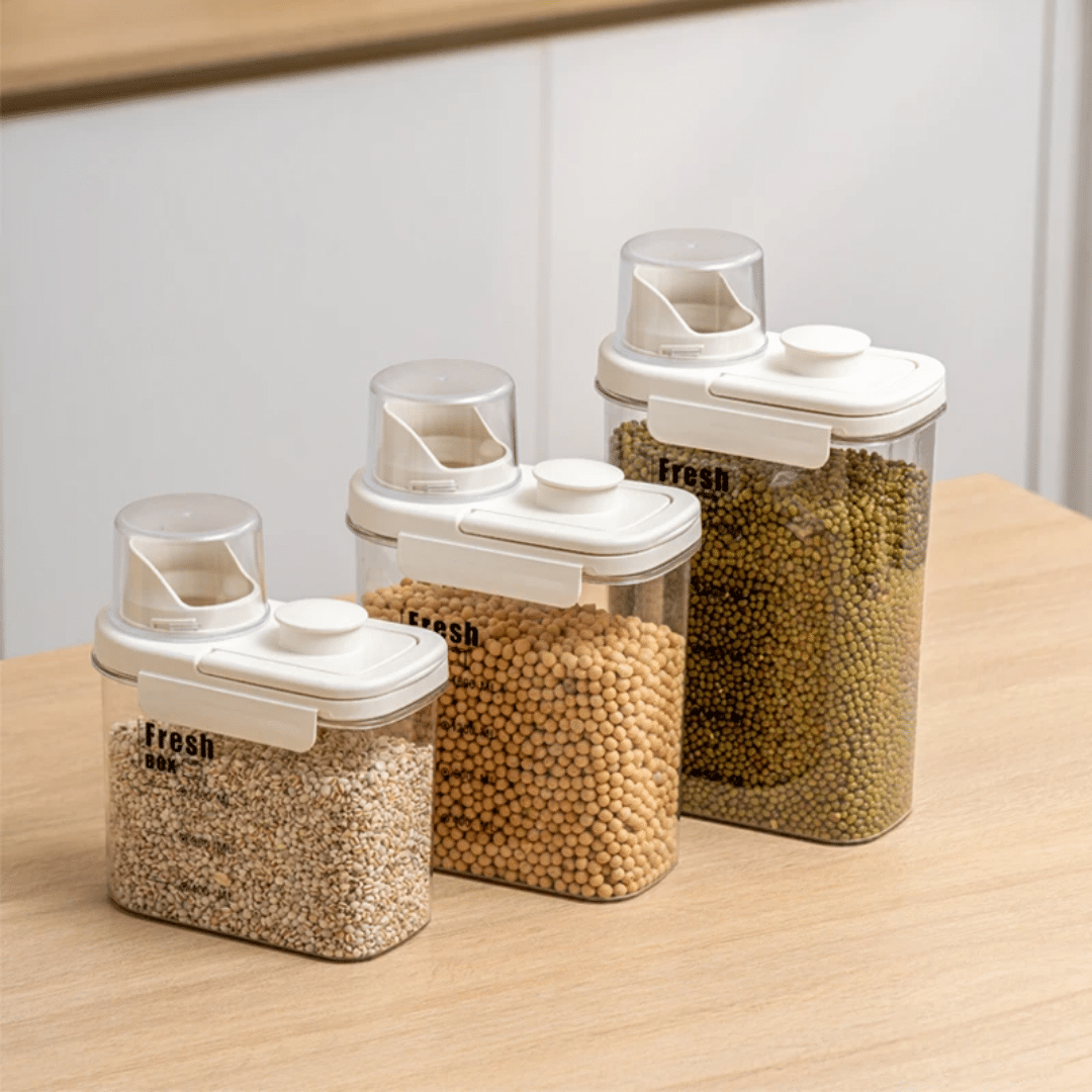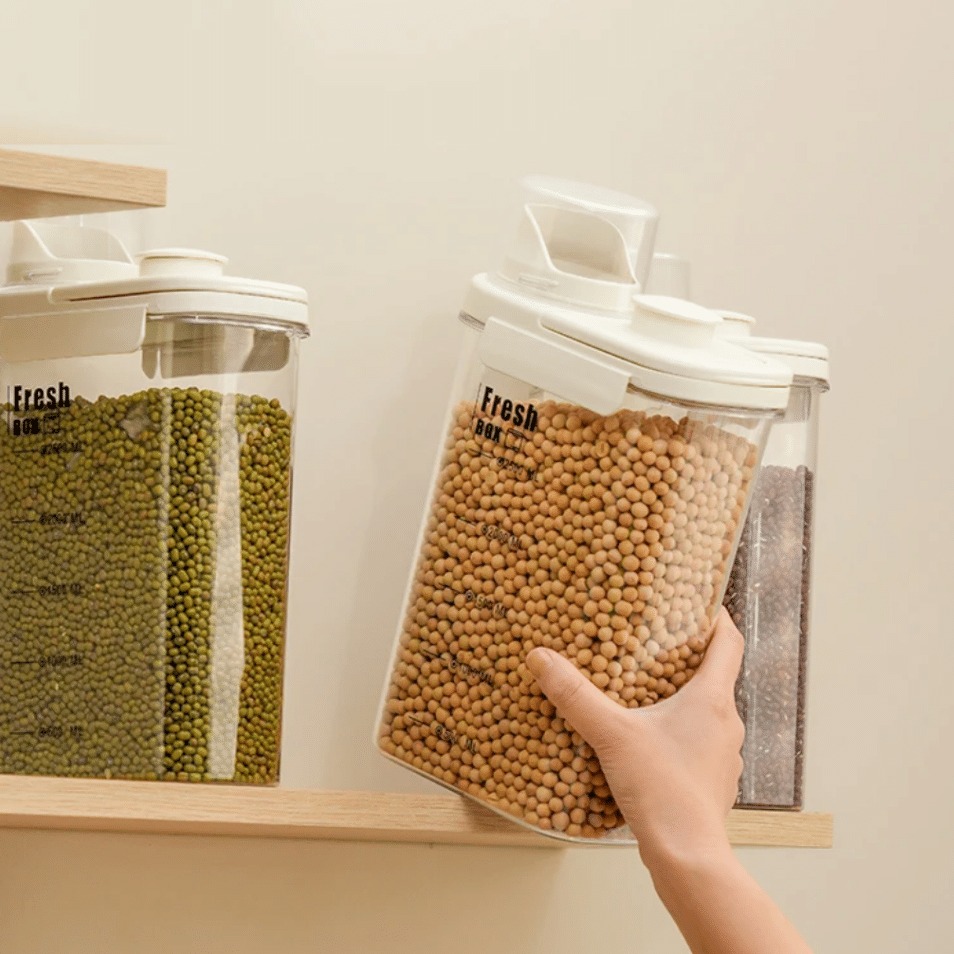 بانکه های اکریلیک نشکن FRESH BOX بانکه شفاف از جنس اکریلیک نشکن و مقاوم مناسب حبوبات، مایعات و پودر لاندری دارای درب محکم ضد ورود هوا و رطوبت وزن سبک و طراحی شیک موجود در دو سایز گنجایش سایز بزرگ : 2500 میلی لیتر گنجایش سایز کوچگ : 1200 میلی لیتر