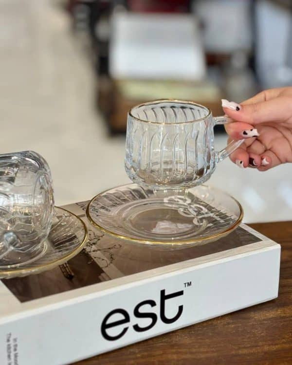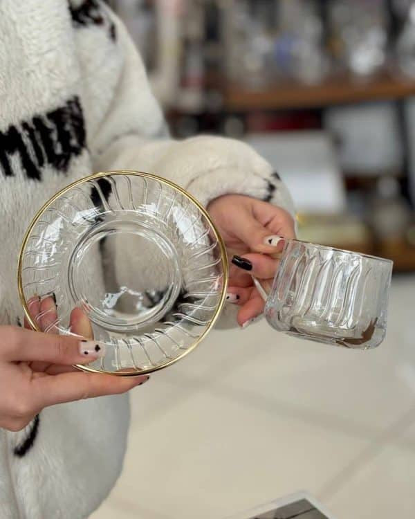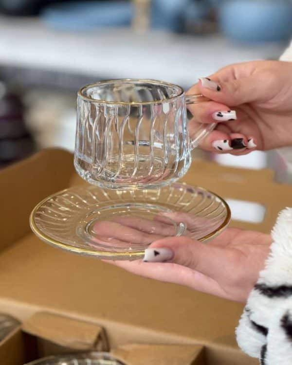 ست استکان نعلبکی شیاردار لب طلایی دلی گلس وارداتی اورجینال DELI GLASS